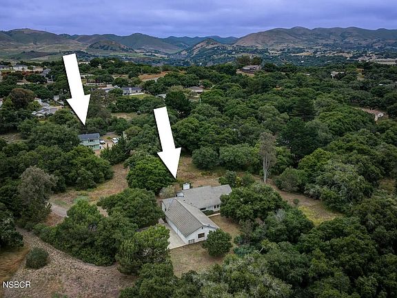 1535 & 1537 Dale Ave, Arroyo Grande. Two homes on 2.5 gorgeous acres in Arroyo Grande adorned with amazing majestic oaks and mature landscaping. The main home is a 3/3, 2,642sf, single-level ranch style home with a clay tile roof, high ceilings, two fireplaces, ceiling fan & Saltillo tile floors. The country kitchen has stainless steel appliances, kitchen island and French doors that lead to lovely backyard patio and backyard. All bedrooms have walk-in closets and include two primary suites, one with fireplace, French doors that lead to back patio, two closets and bathroom with soaking tub and dual vanities. The other primary suite has built-ins and bathroom with shower tub combo. Don't miss the laundry/mud room with tons of storage and washer dryer hook ups that lead to a huge oversized 3-car garage with utility sink and workshop area next to the 3rd bay. Travel down the other driveway and you'll find the charming two-story 1,344 sf. guest house. This 3/2 features laminate flooring, 1/2 bath downstairs, laundry room closet, nice size living room with picture window and sliders that lead to little backyard area that is perfect for kids and pets. Upstairs you will find 3 bedrooms and 1 full bath with a bath shower combo. Shed included. Gated pasture for animals and tons of space for all your 4-H projects, hobbies, pets and family.