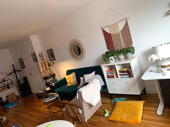 This stunning JUNIOR 1 BEDROOM apartment offers a combination of style, 3 utilities included, and modern upgrade. PARKING SPOT FOR $250/MONTH - AVAILABLE! Key Features: Bright and Generous Living Room: A well-lit, exposed to EASTERN light, oversized living room creates a perfect space for relaxation and entertaining. Newly Renovated Kitchen: Conveniently situated across from the dining area, the kitchen boasts stainless steel appliances, including a dishwasher, touchscreen Refrigerator, blending functionality with sleek design. Tight-Size Bedroom: only Queen size bed by itself would fit in the room. Modern Bathroom: Beautifully renovated with contemporary touches to ensure comfort and style. Ample Storage: Multiple spacious closets provide abundant storage options. Additional Highlights: NEW A/C unit and high-end condo-style finishes throughout the apartment enhance both form and function. Natural Light with Scenic Views: Eastern exposure ensures the apartment is filled with natural light throughout the first part of the day, complemented by serene views of greenery, and overlooking nearby houses. Recessed lighting brightens the apartment up at evening hours..