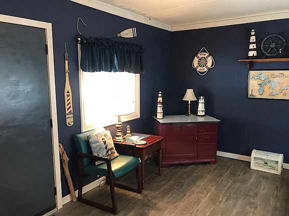 12 x 50 mobile home at Lakeshore Court has a wonderful view of Lake Manitou from the large covered deck. Two bedrooms, one bathroom, open kitchen/living, and pier space included! Buyer subject to approval by Lakeshore Court Inc. Lot rent --$240 per month includes trash pickup, water/sewer, and mower use.