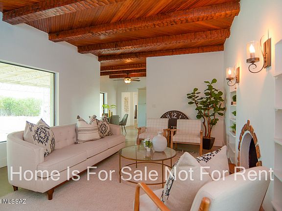 Beautifully remodeled mid century style home. Located in a convenient central Tucson location. Split bedroom floor plan. Modern stained concrete flooring. Exposed wood beams. Updated modern kitchen with stainless steel appliances and granite countertops. New custom interior and exterior paint. Brick accented fireplace in living room. Spacious owner's suite with slate accented fireplace and walk in closet. Updated modern bathrooms. Mature vegetation including lush grass. Mountain views. Oversized carport. Upgraded door hardware and light fixtures. No HOA. This home shows beautifully.