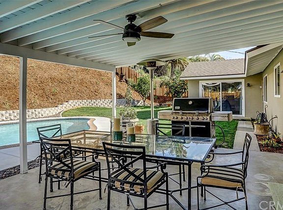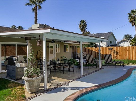 This house was completely remodeled top to bottom by the original owner in 2016. We are the second owners of this home. This home features ALL new windows, sliders, exterior doors, asphalt shingle roof, copper plumbing, electrical main breaker cabinet, can lighting, crown moulding, plantation shutters, ceiling fans through out, gourmet kitchen, bathrooms, flooring, interior doors, property wood fencing, paint inside and out, appliances and lots of style. This once typical ranch style home has been opened up, modernized and is now drop dead gorgeous. There are two masters, one at each end of the house. The bathrooms are elegant with accessible showers. The chef's kitchen features new cabinets, new quartz counter tops, new stainless steel appliances and lots of counter prep space. Great home for entertaining inside and out. The yard is just under one third of an acre. There is an newly re-plastered in ground pool with dual pumps and a covered patio. Excellent Redlands schools to boot.