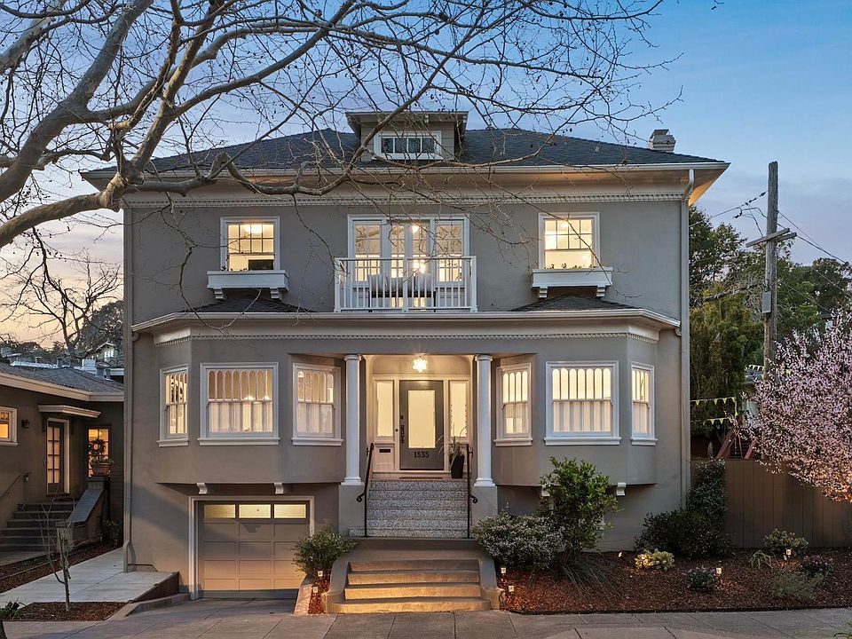 A true urban oasis, this gracious traditional has stately street presence and is sited on an open, light-filled corner lot close to schools, shops and restaurants. Warm and inviting, the foyer opens to a living room with high ceilings, arched windows and a distinguished fireplace. Windows on three sides ensure abundant natural light. The dining room is truly special, boasting the same charming arched windows, box-beam ceiling and beautiful period moldings. A large kitchen with stone countertops, a spacious island, and cabinet faced appliances is sleek and functional with ample storage and a sunny breakfast room with access to the backyard. A convenient powder room completes this floor. Four bedrooms upstairs include a large primary with ample closets and built-in seating, a sunny front room with French doors to a Juliet balcony, a spacious third bedroom and a tween sized sleeping room with access to a balcony overlooking the yard. An updated bathroom with double vanity completes this floor. The back and side yard are fully fenced for privacy with room to play and entertain. The garage & air conditioning add convenience and comfort to this lovely offering. Welcome to Piedmont!