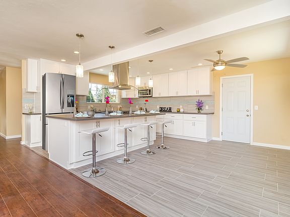 The home also has AC for those warmer summer days, as well as new ducting, plumbing, kitchen fixtures, landscaping, dual-pane windows, fencing, lighting, and fixtures. Large backyard too! Neighborhoods: Castle Park Equipment: Range/Oven Other Fees: 0 Sewer: Sewer Connected Topography: LL This home was recently remodeled, including a new roof with a 50 year warranty. Designer kitchen w/ Quartz counter-tops, stainless steel appliances, large gourmet island, wood cabinets, updated flooring, and high-end Porcelain tile.