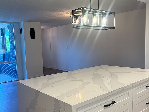Stunning and spacious condoModern designSophisticated kitchenOversized kitchen barStainless steel appliancesWalk-out to the balcony