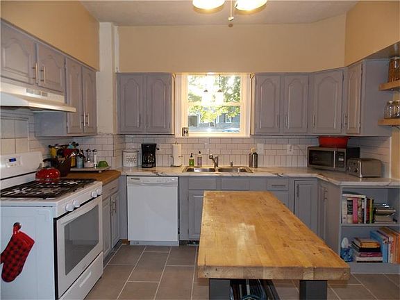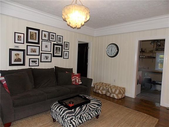 Inviting! Chic! 3 bedroom, 2 bath stone/vinyl ranch conveniently located-Completely updated-Livingroom w/unbelievable trim-Large fully equipped kitchen w/tile floor & backsplash, appliances & butcher block island-Sunken diningroom w/double doors for privacy...sliding door to deck w/pergola-Detached garage w/new door & opener-Central air-Washer & dryer-Walk up attic-Home warranty