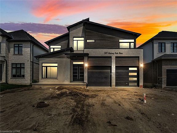 TO BE BUILT- This beautifully crafted custom home with a walkout basement boasts stunning views of a scenic pond. Meticulously crafted by Mansion Homes- This contemporary design offers fashionable exterior finishes such as Maibec horizontal board and elegant architectural stone. With a spacious design of 3,436 SF, the home features 4 bedrooms, 3.5 bathrooms, 2 en suite bathrooms, along with a jack and Jill bathroom and 2nd floor laundry. The main floor offers a cozy office, formal dining room, large great room, and a spacious kitchen with a pantry and dinette area that leads to the oversized covered deck. The primary bedroom has a private balcony overlooking the tranquil pond views, a great spot to enjoy your coffee. The unfinished walkout basement provides a range of possibilities, including a 5th bedroom, office, rec room, home gym, theater room, and even a kitchenette for a secondary dwelling. This stunning home is located in the desirable Fox Field neighborhood, with close proximity to shopping, dining, and recreation options, including Masonville Mall, UWO, University Hospital, and excellent schools. The home advertised is just an example of the type of home that can be built. The builder is open to customization! Call today to schedule an appointment and make this your next home!