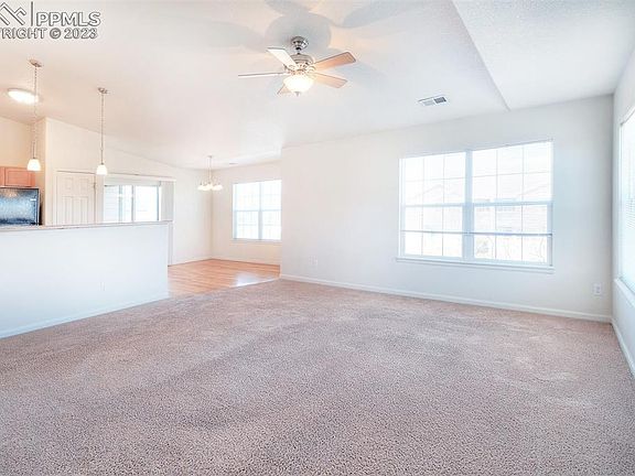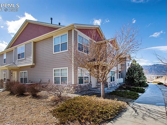 Beautiful end unit condo located in the desirable Spring Creek neighborhood. This two bedroom two bathroom home offers great views of the mountain range and is in close proximity to Fort Carson and downtown Colorado Springs. The master bedroom includes a an adjoining bathroom, a walk in closet with an ample amount of space and a walkout to the back deck. The secondary bedroom is generous in size, has plenty of closet space and is just steps from the full bathroom. This house is perfect for entertaining as the kitchen flows right into the spacious living room that offers plenty of natural light. The kitchen includes a breakfast bar, a pantry and wood floors that extend into the dinning area. Also conveniently located off the eat in kitchen is a walkout to the deck that includes expansive mountain views. This home includes Air conditioning and a one car garage.