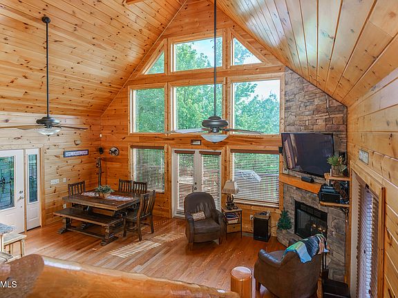 Amazing cabin with priceless views, views, views! Newer stainless appliances and furniture to convey. Incredibly well maintained cabin with recently replaced : HVAC, well pump, water softener, insulated crawl space, water heater, pool table recently resurfaced. Open floor-plan including floor to ceiling windows in living area, stone fireplace, soaring cathedral ceilings.Sitting on 1.5+ acres and backing up to 400 acres of private land, enjoy one of the most breath taking views in the Smokies from your back porch rocking chair or hot tub, unimpeded by other cabins or developments! 3 bedrooms (septic permit allows for 4 bedrooms) with a loft gaming area that sleeps 10+ with a pool table and gaming arcade, gross rental of 96k last year with 45k+ so far this year. Minutes from the park GSMNP park, beautiful; landscaping and outdoor fire pit and level expansive driveway for plenty of easy parking. Schedule a showing today!