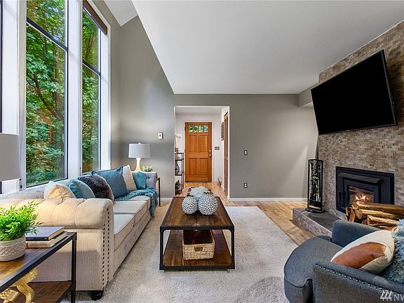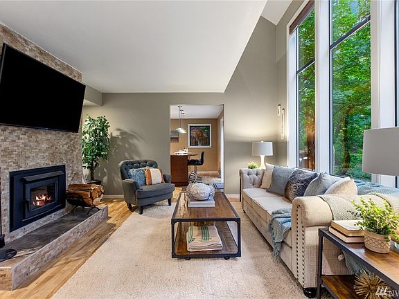 Zen like peacefulness tucked in the woods only a half mile from Old Town, ferries & beaches! Very private, w/ towering windows & open spaces that provide for a beautiful, natural oasis in the middle of city living. Sit outside on one of the tiered decks under majestic maples & listen to the creek below, work in the detached office or read cozied up by the fire in this meticulously maintained home. 900 sq feet has never lived so well, your own private treehouse!
