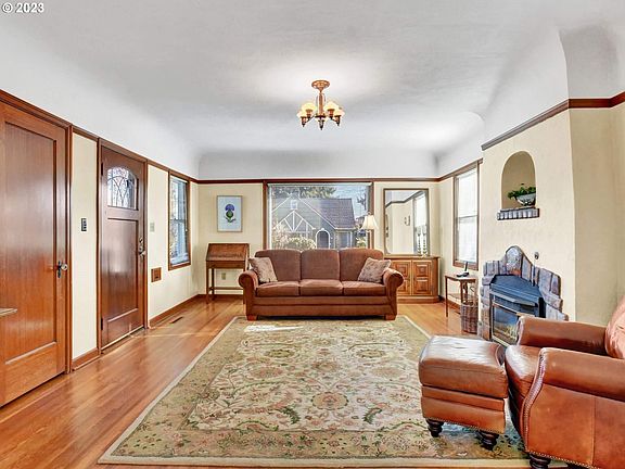 Timeless Elegance: 1937 English Bungalow. Cherished for 37 years, this 4-bed, 3-bath gem radiates classic charm. Generous living and dining rooms, hardwoods, gas fireplace, and a spacious kitchen with nook create an inviting atmosphere. Recent upgrades (roof '19, furnace/AC '21, water heater '22, newer water main) ensure modern comfort. Safety features include a new sewer line, 200 amp electrical panel and radon mitigation system. DEQ-certified decommissioned oil tank. This isn't just a house; it's a legacy waiting for your story. [Home Energy Score = 1. HES Report at https://rpt.greenbuildingregistry.com/hes/OR10223620]