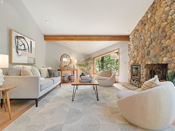 Step into the perfect blend of modern elegance and Pacific Northwest charm with this stunning custom NW contemporary home nestled on a private, fenced .43-acre lot. Designed to embrace the beauty of its forested setting, this home features walls of windows that flood the space with natural light and provide views of evergreen trees, expansive deck and large fenced yard.Inside, you'll find newly refinished hardwood floors throughout the majority of the home, freshly painted main interior areas, and newly cleaned bedroom carpets. The gourmet kitchen is a chef’s dream, boasting built-in Subzero refrigerator and upgraded stainless steel appliances, leathered granite countertops, and custom tile—perfect for entertaining or everyday luxury. The large private primary bedroom has hardwood floors, soaking tub and balcony. This versatile layout makes this home ideal for multi-generational living, home office use, or accessible living, with a bedroom and bath conveniently located on the main floor. The newer roof which has been recently inspected, and there is a newer water heater and well maintained deck. The location is truly unbeatable—just minutes from downtown, Nike, Intel, top-rated schools, hospitals, restaurants, and shopping, all while benefiting from Washington County taxes.If you're looking for a home that offers style, function, and a connection to nature, this one is a must-see!
