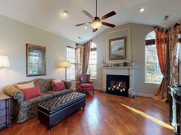 Immaculate former builders model ranch-style condo in Apex Orchard Villas community. Many high-end upgrades, incl. H/W floors in main areas, paneled doors and custom drapes. Combo LR/DR features vaulted ceiling + gas log fireplace. Kitchen has custom cabinets, granite tops + s/s appliances. Master suite includes walk-in closet and oversized walk-in shower. Furniture-quality, built-in bookcases in 1st floor office. 2nd floor loft/bedroom has walk-in closet + full bath w/ soaking tub/shower. New A/C 2019.