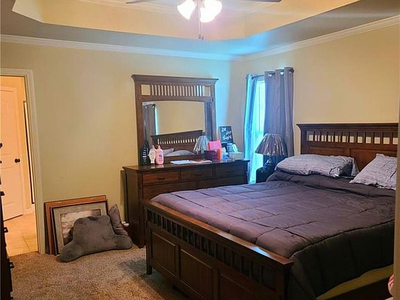 Check out this spacious open floor plan with Island in the kitchen that opens into a welcoming living room. A large master suite with tray ceilings; amenities galore to please the eye. Quiet neighborhood; convenient to everything. A great price!