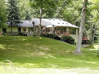 Buckhorn Creek runs through it!!! Well -built ranch with an open floor plan & walk- out finished LL on 12+ gorgeous, wooded acres. Huge stone FP in great room. Second kitchen area possible in LL. Wolmanized decking & balcony. Second garage 60x20 Lots of great views out every window. This is such a natural setting you will not want to leave! Very serene. Lots of wildlife and standing hardwoods. Much care & thought put into this home. Check it out.