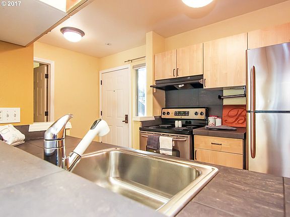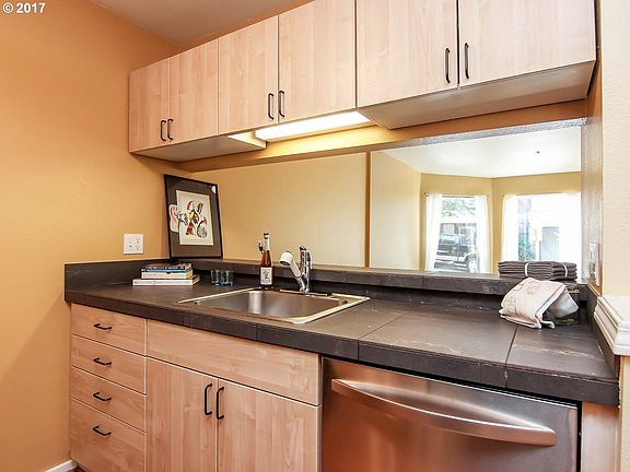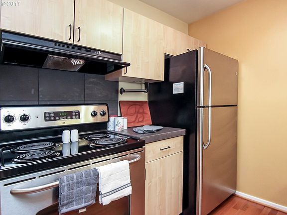 True 1 bdrm Clay Street Commons Condo with one bathroom and 1 garage parking/storage space in desirable Goosehollow Neighborhood. Cozy & updated contemporary includes SS appliances, tasteful interior paint & updated bath. Rare ground level unit with access via the elevator from the parking garage. With a Walkscore of 88 easily access downtown, the Pearl & PSU.