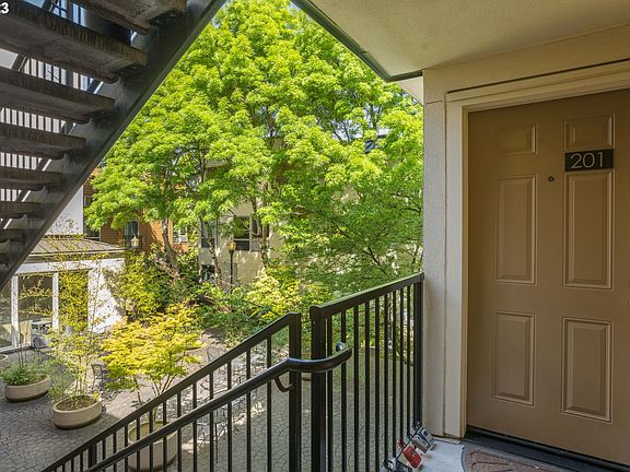 Super clean and stylish townhouse-style condo is only 1 of 2 units in Clay Street Commons with its own private patio! Fresh interior paint, primary suite with built-in cabinetry and closet, updated bathroom tile and fixtures. Stainless steel appliances, washer & dryer included. Ample storage in kitchen cabs and pantry/utility room. Air-conditioned unit. Minutes to Pearl, PSU, OHSU, Providence Park, freeways, bus & MAX. No rental cap - HOA allows rentals. Secure parking garage with 2 deeded parking spaces, storage locker, bike lock-up area and elevator to 2nd floor. Beefy security entrance on Clay Street opens to a large, landscaped courtyard for residents. Pets OK! Well-run HOA with no current litigation or special assessments. Tremendous value for Goose Hollow in a quiet and secure building - this is a must see!