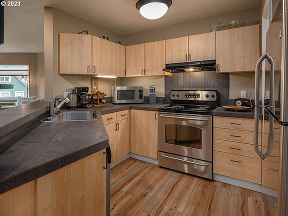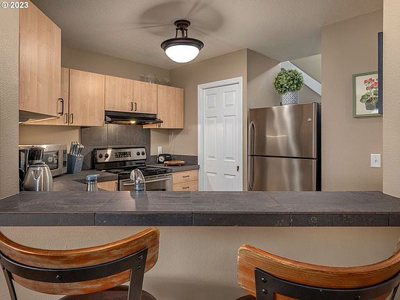 1 Bedroom Townhouse-Style Condo in Clay Street Commons. Welcome to your dream home in the heart of Goose Hollow! This clean and stylish condo offers a perfect blend of comfort and convenience. Step inside and be greeted by the fresh interior paint, modern new Hunter Douglas blinds, and all new flooring throughout. The kitchen is equipped with stainless steel appliances and ample storage in the cabinets and pantry/utility room. The convenience of having a washer and dryer included cannot be overlooked. This unit is thoughtfully designed with air-conditioning, ensuring your comfort during the warm summer months. During the winter months, you'll have the pleasure of enjoying a unique feature that sets this condo apart- a cozy fireplace. You'll appreciate the flexibility of the HOA, as there is no rental cap, allowing you to capitalize on investment opportunities. The secure parking garage offers the convenience of 1 deeded parking space, a storage locker, a bike lock-up area, and an elevator to the 2nd floor. Clay Street Commons truly prioritizes the safety and well-being of its residents. The beefy security entrance on Clay Street provides peace of mind, while the large, landscaped courtyard offers a serene escape from the bustling city. As a pet-friendly community, you can bring your furry friends along for the adventure. The value this property offers in Goose Hollow is truly unmatched, providing a quiet and secure oasis in an urban setting. The proximity to Pearl, PSU, OHSU, Providence Park, freeways, bus, and MAX makes commuting a breeze. Don't miss out on this incredible opportunity to own a piece of Goose Hollow paradise. Schedule a viewing today!