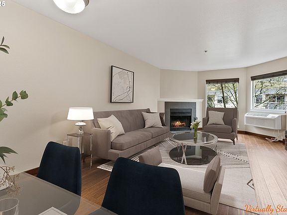 Amazing value for top floor 2 bed 2 bath corner unit at Clay Street Condominiums in Goose Hollow. Move-in ready unit with new carpeting, new hardwood flooring, new HVAC, fresh paint. Stainless appliances, washer/dryer, wood burning fireplace, lots of storage, good views from every window. 2 parking spaces + storage unit, and very low HOA fees. Clay Street Commons is set around a secure and tranquil courtyard near Providence Park, downtown, MAX light rail, shopping, and more.