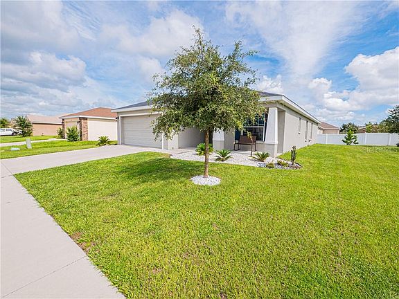Stop looking, this is THE ONE! From the moment you walk in you'll be greeted by tons of natural light!! This gem was built in 2017 and boasts an open floor plan, formal dining room, beautiful counter-tops, and huge backyard for all your relaxation or gathering needs! Upon entering, take notice of the great room with vaulted ceilings & sliding doors offering views to the covered lanai and give this massive space a light and airy feel. Walking on the beautiful wood-look vinyl, continue to the well-appointed modern kitchen featuring granite counter-tops, double sinks in your huge island, matching appliances, pantry closet, and breakfast nook with plenty of space for a dining room table. The spacious master suite is truly a retreat. The master bath does not disappoint! It's light & bright with a dual vanities, large garden tub, separate shower, water closet and ample walk-in closet. The home's split plan offers 3 large carpeted bedrooms with generous closets. Other great features of this home include an inside laundry room with lots of space and shelving. Enjoy relaxing evenings in your screened in lanai overlooking your spacious backyard. Right down the street from Berkley Charter Schools. Conveniently located near I4, perfect for anyone commuting to work in Orlando, Tampa or Lakeland. Don't miss the opportunity to call this your new home!