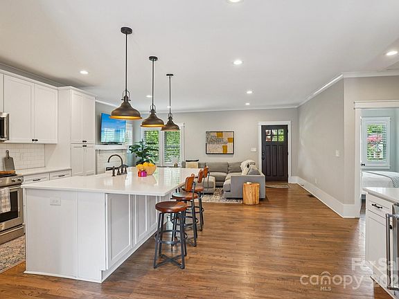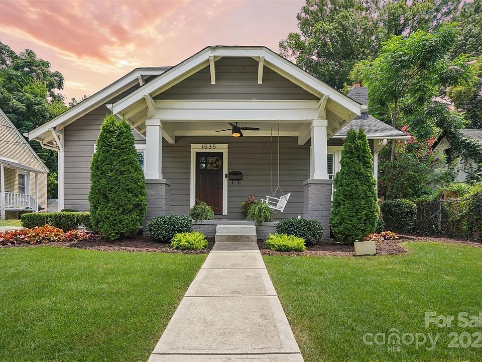 Welcome to 1535 Southwood Avenue, a beautifully restored 1928 bungalow in the heart of historic Wilmore. Taken down to the studs and fully renovated in 2020, this 3-bedroom, 2-bath home combines classic charm with thoughtful modern updates—new roof, HVAC, full electrical, plumbing, and refinished hardwoods. The open floor plan is bright and welcoming with 10-foot ceilings, while the stunning kitchen features gas cooking, stainless appliances, and an oversized island perfect for entertaining. The primary suite offers a walk-in shower and stylish finishes. A covered front porch with a swing invites you to unwind, while the freshly painted back deck and fenced yard with private parking provide a rare backyard retreat. Just blocks to South End, light rail, dining, and even Dilworth—this home delivers timeless style in one of Charlotte’s most desired and vibrant neighborhoods.