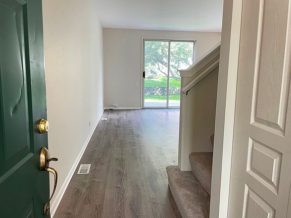 Welcome home to this perfect townhome community with an abundance of mature trees, ponds, walking paths and nearby parks for all ages. 2 bedroom, 1 1/2 bath, second floor laundry with washer and dryer, 2 car garage and wonderful backyard patio and green space. Brand new vinyl plank flooring and carpet throughtout. Fresh paint. New AC. New garage door. New powder room vanity. Ready for immediate occupancy!