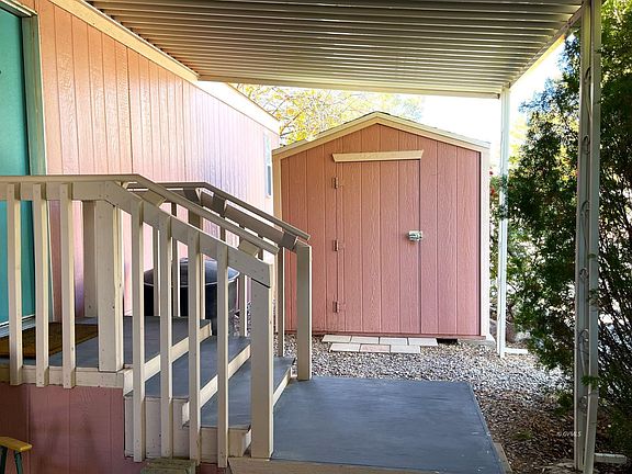 - Exterior Features: Storage Shed, Trees, View of Mountains, Corner Lot, Landscape- Full, Sidewalks, Deck(s) Covered, Senior Only Area, Patio- Covered, Sprinklers- Manual, Sprinklers- Drip System, Road Type- Paved, FEMA Flood Ins (Not Required)