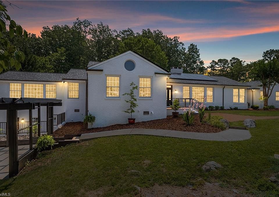 One-of-a-kind, fully renovated brick ranch perched atop prestigious Dave’s Mountain with stunning views of Mt. Sheppard and the Uwharrie Mountains. This timeless 4BR/3.5BA home offers 2 primary suites, beautifully refinished white oak floors, and a custom kitchen with quartz countertops, JennAir appliances, subzero fridge, gas cooktop, wet bar, and double wall ovens. Spacious laundry room with built-ins and folding area. Luxurious primary bath with soaking tub and sunset views. The 374 sqft Walk out suite includes a bedroom, bath with tiled walk-in shower, wet bar with fridge/sink, and private entrance. 2023 roof replacement with existing solar panels (avg. $34/mo. power bill). Entire yard is completely fenced and features irrigation from a separate well, water feature, and blooming wildflowers abound. Old-world charm meets modern luxury in this extraordinary mountain retreat!!