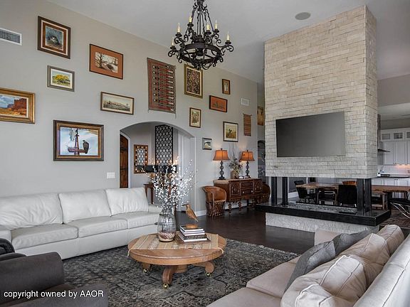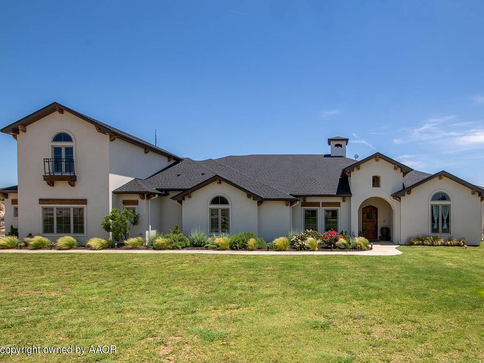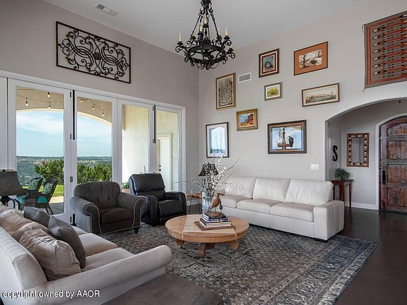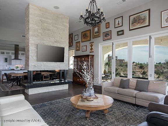 What a VIEW! Gorgeous home sits on the rim of Palo Duro Canyon in River Falls. You'll catch every sunset outside on the huge porch or through the tons of windows. Comfortable & efficient with foam insulation, high efficiency heating & air (2 units downstairs, 1 upstairs), whole house humidifier, argon windows and hydronic-radiant heated floors through the entire downstairs. Also includes a whole house generator, storm shelter, nest front door camera, security cameras around the home. Wired for surround sound in the living room and media room, whole house water filter system, 6 burner gas cooktop, stainless steel appliances and tons of storage. Brand new roof. 4th bedroom is a private suite w/ an exterior exit perfect for guests. The oversized garage has plenty of room for your ATV. All Riv