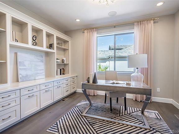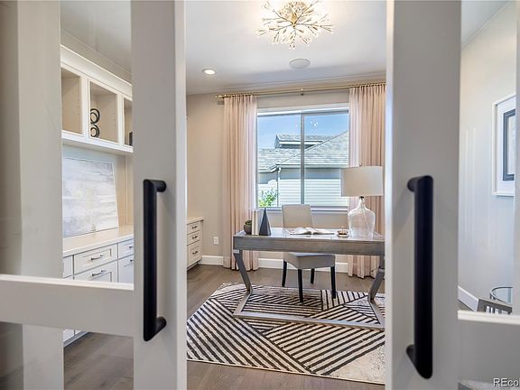 Indulge in luxury living at its finest! Meticulously designed, this home redefines opulence with an abundance of custom features and high end finishes with impeccable attention to detail throughout. The great room's stained beams exude architectural charm while a natural stone mantel fireplace radiates warmth and elegance. The chef's kitchen features Thermador appliances, six-burner range, dual convection ovens, wine refrigerator, cocktail ice maker and an entertainer's island. Continuing through the main level you'll find an office with extensive built-in shelving plus a spacious bedroom adjacent to a 3/4 bathroom. Upstairs, the primary bedroom suite features coffered ceiling, reading nook with a gas fireplace and private outdoor deck. The primary bathroom is a spa-like retreat with two rain overhead shower heads, soaking tub and a sit down vanity. In addition, the closet boasts upgraded shelving, built-in laundry bins and a center island. Two additional bedrooms, a full bathroom, laundry room and a loft entertaining area complete the second floor. Special upgrades include: Logan solid core doors, pull trowel drywall finishes, hardwood and tile flooring, plush carpet and Hunter Douglas blinds. One of a kind features include the living wall as you enter the home, Hex Barn Door and eye-catching lighting will WOW you! Technological innovations abound with a tech panel, stair lighting, ceiling speakers, Nest thermostat, commercial-grade wiring and so much more. The finished walk-out basement offers an expansive entertainment space with a full wet bar and the 5th Bedroom or a home gym. The extended deck invites you outdoors to enjoy the landscaped surroundings backing to designated open space. Automatic sprinklers ensure vibrancy for your flowers, plants, trees and raised garden beds. With a thoughtfully designed layout and premium features, this home embodies timeless elegance, comfort and convenience. This home offers exceptional views that will take your breath away.