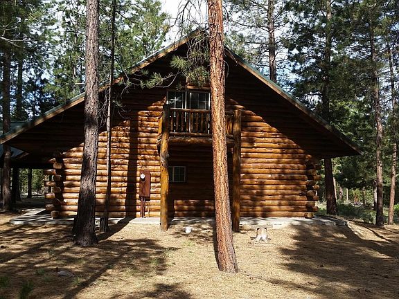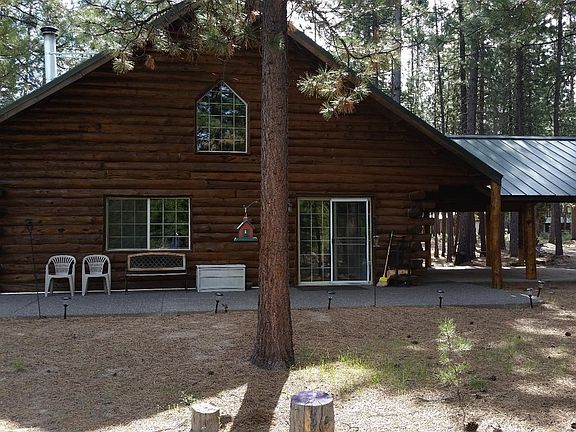Rare opportunity to aquire a Custom built Log Home backing forest lands in Little River Ranch. This is a gorgeous home built with love and only the best. 3 bedroom 2 bath sits on 1.3 acres adjacent to thousands of acres directly to the west for four-wheeling or quiet nature walks. Situated on a corner lot featuring covered porches, full back patio, outdoor custom fire pit/entertainment area, custom wood-shed as well as an additional workshop/storage area with added lean-2 for toys. Attic storage over carport. Dramatic high ceilings, and skylights. The balcony off of master bedroom overlooks the forested grounds. Frequently visited by birds/deer and other wildlife. If your looking for a custom Cabin in the Woods this is the place!
