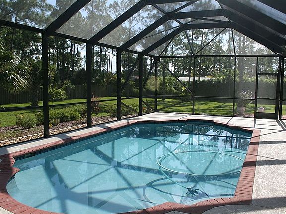Luxurious 4 bedroom CBS pool home. Spacious formal living/dining rooms, gourmet kitchen w/granite counters. Family room is light & bright features a working electric fireplace and beautiful built-in library. Grand master suite with view of the pool, Beautiful Saturnia marble floors grace the main areas of this spacious home. Excellent floor plan includes split bedrooms, attached guest apartment with it's own kitchen and living room, Large sliding glass doors enhance the view to the screened pool, sitting on 1.15 acres this CBS home has all the bells and whistles: screened in pool, French doors, granite, Saturnia marble, custom cabinetry, full guest apartment, oversize two car garage with breezeway, double wide driveway runs through to main road, all paved access roads; New roof November 2021, house to be proud of! Elegant!