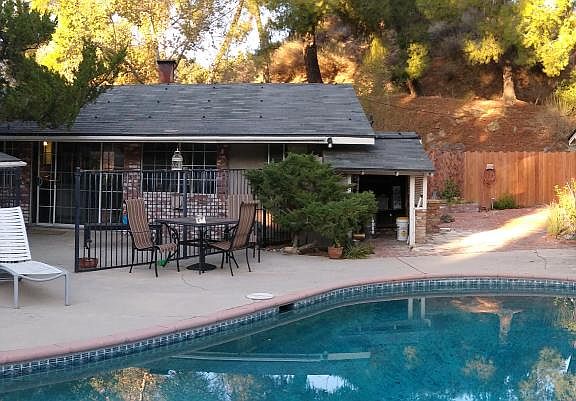 Two bedroom two bath Sand canyon secluded cottage style home with pool and gated yard with bungalows to use as shops or offices and Cabana. Owner pays for water all other utilities including propane delivery must be paid by renter. Spectrum cable services available no dish Network . pets to be discussed in person. Must have personal references.