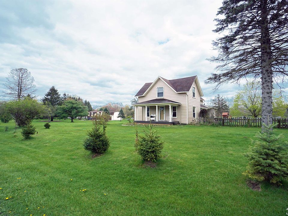 COUNTRY HOME ON 11.28 ACRES! Searching for the perfect country home and your own private estate to enjoy? This is it! You’ll fall in love with this classic farmhouse updated for modern living. Sit a spell on the front or side porch and revel in the beauty of this property nestled on 11.28 acres w/ 5 acres of yard & fenced pastures, perennial gardens, fruit tree orchard, plus 5 acres of woods w/ trails. 3 outbuildings include a 24x30 pole barn w/Greenhouse, 2.5 car garage & horse bldg w/stalls. Inside, the open floor plan has a large updated kitchen w/ island & granite countertops, Laundry rm half Bath, Mud rm, Sitting area, Bdrm /Office & full Bath. The 2nd floor has Master Suite w/sitting area & full Bath; plus 2 additional bdrms. Updates: electric, furnace 2018, HWT 2019, well water filtration system 2022, appliances 2018. Highest and best offer deadline 5pm, Tues, April 30th.