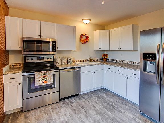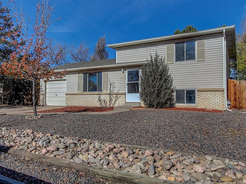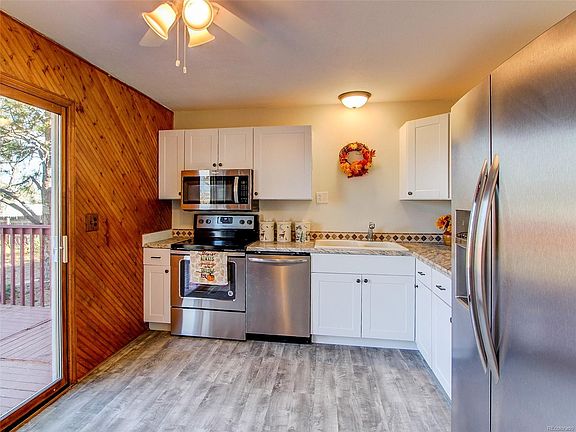 Well kept Tri-Level house with custom improvements in totally updated kitchen and reconfigured lower level, make this home a unique buying opportunity. Kitchen features all new S/S appliances, new cabinets and designer back splash. Backyard has a spacious double level deck with plenty of room for outdoor living in Colorado weather, storage shed and over 8972 sq. feet for garden, dog run or just extra space. The upper level has two bedrooms both with ceiling fans and the master with a walk-in closet. Also, off the master bedroom is a deck large enough to enjoy your privacy. New carpet throughout the upper level, living room, and lower level. This large area has been left with a closet on one end, a large window on each end and a 3/4 bath. This could be easily converted to a 3rd and 4th bedroom, a master bedroom with private bath, or left open and enjoyed as a rec or family room. Your Decision! The home has vinyl siding and a zero scaped front yard for easy care. No HOA! See It Now!