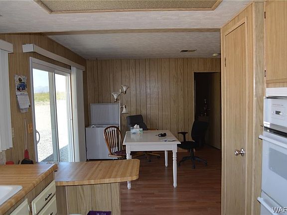 The perfect snowbird retreat*Older Manufactured home in great condition. Cash Only - no bank financing or owner carry available. Spacious 1,416 square feet with comfortable floor plan. Beautiful views in every direction. Up front Black Mountains, panoramic Hualapai Mountains, and also the nearby Mohave Mountains (You know that there's gold up there, right?) Easy access to I-40 for travel to River fun, Kingman, Lake Havasu, Laughlin or just head off into miles of Federal and State Lands. Grid power for your convenience*Additional 2.1 Acre lot next door is included for 4.2 big acres*Truly turn key, all furnishings, washer, dryer, refrigerator, microwave*Comfy beds with good mattresses*Linens etc*Has a 5,000 gallon water tank, Pressure pump, 40 gallon pressure tank, and all relatively new. Roof 3 years old*Nice laminate flooring, shows well & easy to clean*Property cleared for easy maintenance*Home has propane wall heater and wall evaporative cooler, original furnace has been removed, all ductwork remains if you wanted central air/heat again. Previously permitted 48 x 32 concrete pad is ready for your new garage (would need new Mohave County inspection) Property has nice landscaped parts, and gorgeous Ocotillo, Barrel Cactus, Beavertail cactus, and in sight are the famous Joshua trees of the Mohave Desert*Relax on the covered back porch*Fenced*Affordable, and ready - don't miss this one*