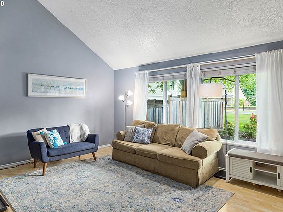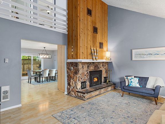 Updated contemporary home on quarter acre lot! Open floor plan w/abundance of natural light. Laminate wood floors throughout. Vaulted Living Room w/wood fireplace. Spacious kitchen w/stainless appliances, updated cabinets, new fixtures, & pantry. Open Dining Room w/2 sliders to deck and backyard. Master suite w/skylight & dbl closet. Huge fenced backyard w/large deck, garden, lush lawn & mature trees. Newer roof & gutters. Covered RV parking. Great location-just blocks to Old Town Sherwood.