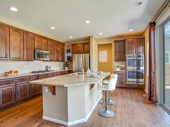 As you enter the home you are greeted by a grand entrance overlooking the designer staircase with wrought iron ballasts, cathedral ceilings, extensive hardwood floors and lots of natural light. The main level also boasts an upgraded kitchen with huge center island, granite counters, upgraded 42 inch cabinets, designer backsplash, extended cabinetry, gas cooktop, double ovens, large walk in pantry and stainless steel appliances and overlooks the dining area and large great room with fireplace, plus enjoy an oversized study with French doors, a formal dining room, powder room and a mudroom with siting bench. Upstairs boasts a master retreat with en suite bath featuring designer tile, walk in shower, large soaking tub and huge walk in closet, a loft with lots of natural light, 2 bedrooms with shared full bath, the 4th bedroom with additional adjoining bathroom, and a laundry room with rough in for laundry sink. The full unfinished basement features extra high ceilings and rough in plumbing is ready for your finishing touches. Superb Location: The home is in the Gardens at Table Mountain which features a community pool, playground area and picnic area and is ideally situated within walking or biking distance to the extensive trail system at North Table Mountain, other trails, shopping, restaurants, entertainment, downtown Golden, the new light rail & more.