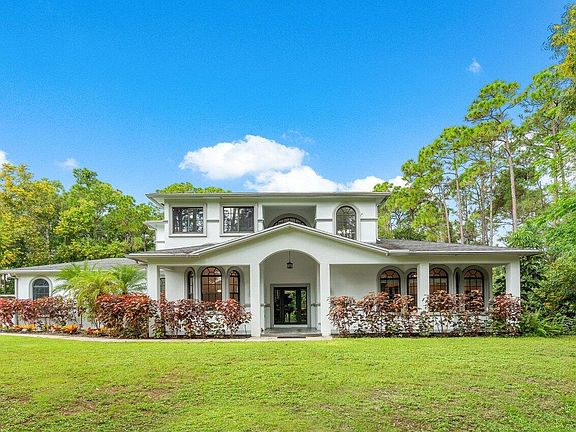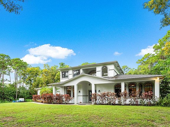 Welcome Home! This grand 4 bedroom home in a NO HOA community is on a huge 1.15 acre lot. Consisting of a spacious floor plan, full impact windows, 2-car garage, a double-sided fireplace, and so much more. The home has been extremely well maintained with recent renovations, new AC, new washer and dryer, plus a great storage shed on the property and a large driveway. There is a ton of space and privacy as well on the patio and covered porch that overlooks the fenced back yard surrounded by beautiful pine trees which creates an excellent amount of privacy. The options are endless with a beautiful and spacious property like this. Located in Palm Beach County, you are extremely close to countless restaurants, shopping centers, schools, entertainment venues, and highways. This is a MUST SEE!