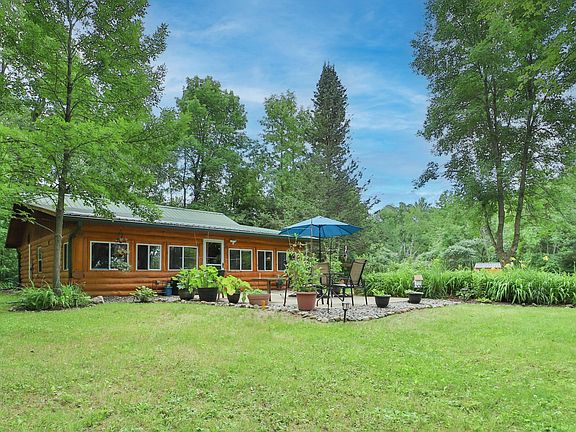 Privacy and peacefulness abound at this cozy year-round two-bedroom log cabin on a tranquil and private 8.9-acre lot with 830 feet of shoreline on picturesque Loon Lake. This pristine private lake has only four homes, with the state owning the rest of the lakeshore. The cabin features a rustic ambiance with an open floor plan, one-level living, vaulted ceilings, log beams, a remodeled bathroom, wood flooring, a stone-accented kitchen, and views that bring the outdoors inside. Additional features include in-floor heating, a foyer entry/mudroom, a 24x14 lakeside patio, a storage shed, a large yard with room to expand, and a terrific location offering the Bay Lake area's best dining and golf.