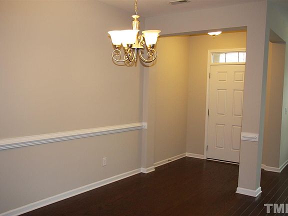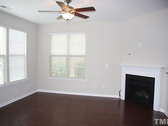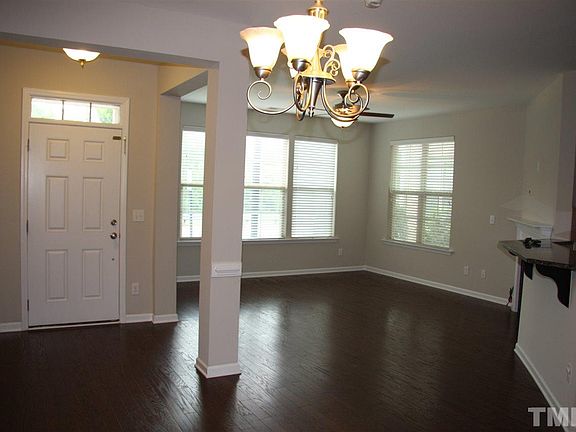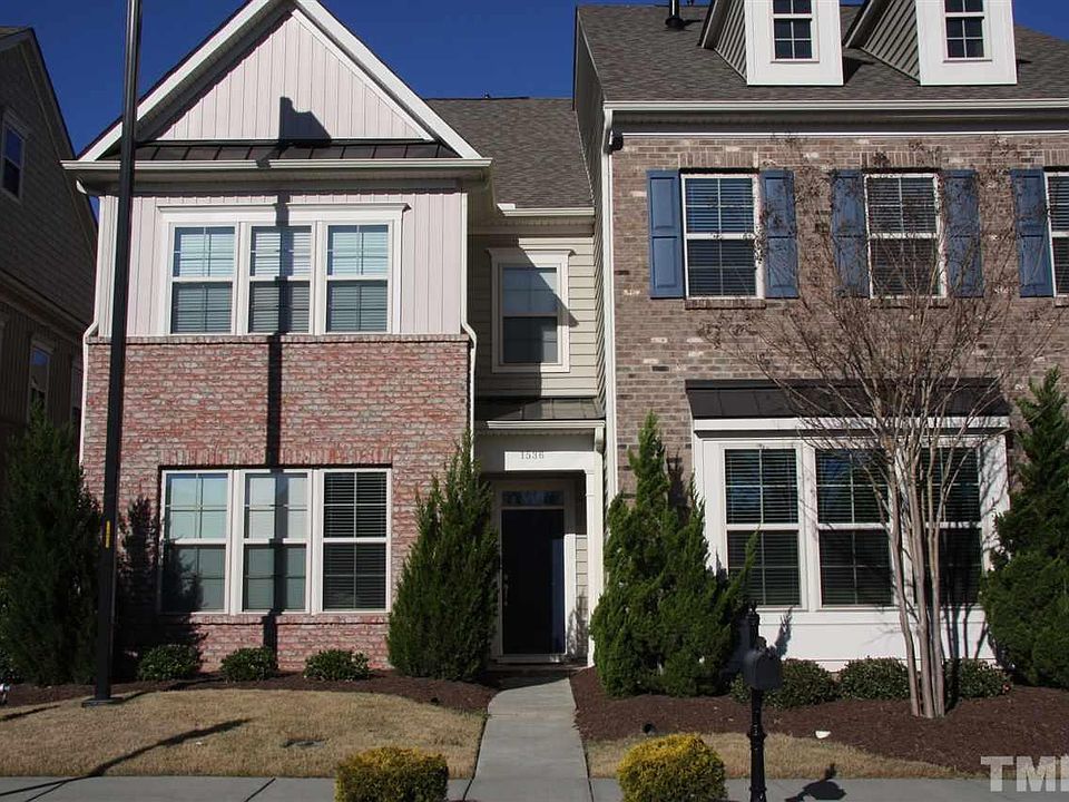 Luxury END Unit Townhouse w/ 3 BR+2.5 BA & 2-Car garage, Close to RTP, Easy access to I-540/55/40. Minutes walking distance to favorite shops, restaurant & community park. Hardwood throughout the main floor. Family Rm w/ fireplace, Dining & Kitchen w/ granite counter tops, tile back splash, 42" cabinets & S.S. appliances. Master suite w/ trey ceiling & WIC, private bath w/ dual vanities, tub & Sep shower, Add 2 BR's w/ Hall BA, Laundry & Loft on the second floor. Beautiful view of the pond and tree line!