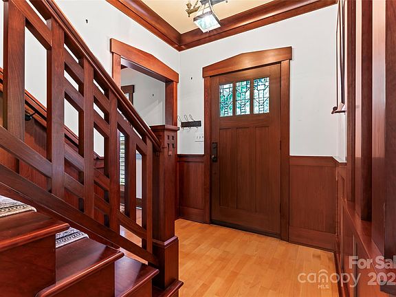 Unique Craftsman style home w. custom touches throughout! As you drive up, you will find an updated exterior w. Boral siding, craftsman style accents, & professional landscaping. Step inside to find a mission style interior w. CUSTOM cherry casings, wainscoting & plantation shutters that are continued throughout both levels. Just off the foyer is the formal dining room w. custom pocket door, kitchen w. custom cabinetry, granite counters, gas range, & antique lighting in the breakfast room. The front parlor can serve as a sitting room/office & opens to the den w. wood burning fplace, built-ins & pocket door w. glass inserts. On the upper level you will find the primary suite w. vaulted ceiling & wood beams & a private bath w. jetted tub, glass shower, stamped concrete counters, copper sinks & custom walk-in closet. BR #2 has a custom Murphy bed & BR #3 has custom built-ins. Outside you will find a custom patio w. fireplace & fenced yard. Great location in established neighborhood!
