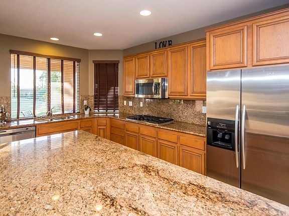 PRICE REDUCTION! OPEN HOUSE Sat. & Sundays 1-5. Bring Offer! A 5 Bedroom & 5 Bath house on .80 acre lot, not including GUEST HOUSE in back with it's own full bath. Back house or office has an attached 2 car garage that is approx. 1200 to 1400 sq ft. not in sq. footage. Extra 2 car garage has high ceilings with sunroof for light, epoxy floors, in-ground scissor lift for cars & a rotary screw air compressor. This is any CAR ENTHUSIAST'S DREAM! Back house or office is complete with air conditioning, it's own full bathroom & semi-finished kitchen. Large master bedroom & retreat with full wet bar and fridge, romantic fireplace and full size patio the length of home for city sunset views. Complete with two stair cases. Extra large loft or bonus room upstairs and library, office/music room downstairs. Granite throughout kitchen with Kitchen Aide refrigerator and 5 burner gas stove, double oven convection oven surrounded by large center island that opens up to spacious nook and family room. Formal dining & living room connects off large entry way. Landscaped in a quiet cul-de-sac with no homes in front. One bedroom downstairs. Private bath & bedroom upstairs & 2 spacious bedrooms that share a bathroom. RV gated & parking for 16 cars. Room for pool!!