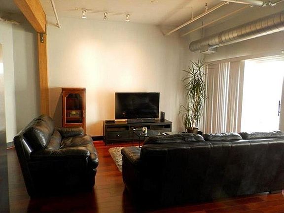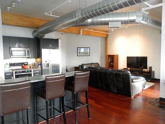 Beautiful open floor plan, modern Downtown loft condo. Loft was finished in 2007 and done beautifully. Stainless steel appliances, granite counter tops, wine fridge and subway tile back splash. Dark hardwood throughout entire unit. Exposed brick and beams.