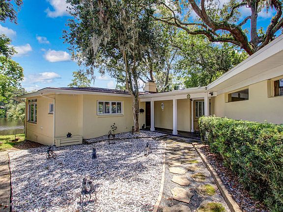 Beautiful picturesque water setting! This 3 bedroom, 2 bath home is tucked amongst majestic shade trees, & the park-like backyard has 145 ft of water frontage! Enjoy the views from all living areas & the Master Suite. Special features of this lovely home include floor-to-ceiling picture windows, gorgeous hardwood floors, updated kitchen & baths, stately brick fireplace, new roof, new HVAC, new water softener system, water heater 2011, freshly painted in 2015 & blown insulation. Floor plan offers open living & dining rms, a den, large fully equipped tile kitchen w/new appliances in 2013. Detached handy 665SF building zoned for storage, plus the 2 car carport offers deep storage closets, too. Enjoy living close to the conveniences of the San Marco Square & Lakewood's restaurants & shopping.