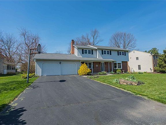 New roof, new windows, newer heat pump, new flooring, and fresh paint are just some of the features you'll find in this well cared for two story colonial in the East Penn School District. The sunny living room with custom Lutron blinds is open to the dining room for easy entertaining. Enjoy views of the golf course from the kitchen with easy access to the laundry room. The sunroom offers plenty of natural light and access to the backyard. The spacious family room boasts an attractive fireplace with brick surround and provides a comfortable spot for relaxing. The four spacious bedrooms upstairs all offer large closets with shelving and newer carpet. Two full bathrooms and a large linen closet complete the second floor. Unfinished basement for additional storage space. Relax outdoors on the Trex deck or covered front porch. Don't miss the chance to make this house your home!