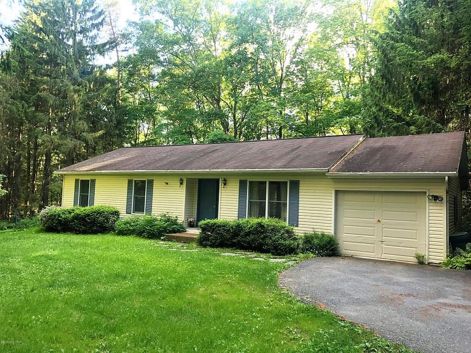 Great Price, Move-In Ready 4 Bed 2 Bath Ranch Home in the Beautiful Pocono Mountains. Quiet country setting with large wooded backyard with Reeders Run stream only a short stroll through the back woods. Enjoy one floor living and enjoy nice room sizes, open concept Kitchen/Dining Room, master bedroom with full private master bath, one car built in garage, Newer flooring, finished lower level and partially finished work shop/utility room. Not much grass to mow here yet enough space to have your own garden. Enjoy watching the birds, deer and wildlife roam through your backyard here. Hunting, Fishing, Hiking, Dog Walking and Skiing all close by. If you like private settings, yet like being close to major commuter routes, shopping and entertainment this place is for you.