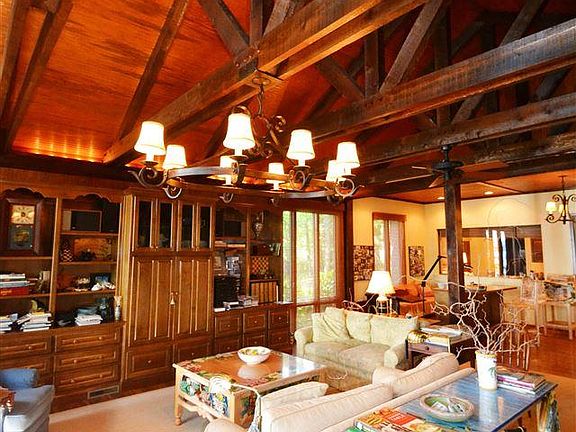Peaceful & Quiet Retreat! Main Channel Waterfront Home and like-new boat house with electric hoist, 3 Roll-up doors, Covered Deck and good water! This property also features a separate boat garage with its own boat launch. The home offers 3 Bedrooms / 2 Full baths, 2,139+/-sq.ft, Vaulted Tongue and Groove Ceilings with exposed beams, Gas Log Fireplace, Built-in Cabinets, Wet Bar, & Family Room with large window wall giving nice views of Lake Guntersville.
