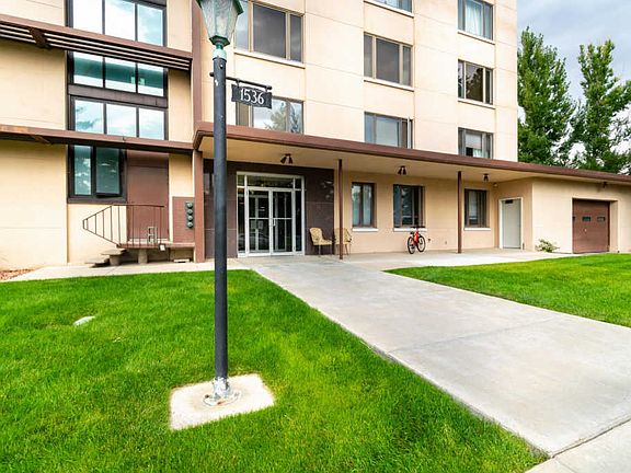 Partially updated single level condo in Fox Farm! Beautiful views, tiled bathrooms, spacious bedrooms, living room and kitchen, endless storage and the best pantry you'll ever see! Take the elevator up to the 8th level and enjoy the sunrise from your own home, or enjoy it with others on the communal area on floor 11. The heated garage is attached to the lobby where you'll find carts to bring in groceries and collect your mail. Each stall comes equipped with a storage section as well. The $450 monthly HOA covers gas, telephone, water/sewer, trash, exterior insurance. This unit runs on baseboard radiant heat (gas and water) and comes equipped with multiple window conditioning units.