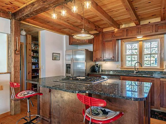 Charmingly renovated/ rebuilt home brings a warm and open floor plan, a delight to see with special custom finishes throughout. The Brazilian mahogany kitchen with stunning granite and stainless appliances is a fine example of the care that has been taken to make this unique home stand out. Off the kitchen is a walk-in pantry and large full bath with laundry, for welcome convenience. The spacious dining room and living room are wonderful gathering areas for friends and family. The cozy den has a gas stove and leads to a private office. Beautiful hemlock floors and radiant heat throughout the first level offer comfortable spots to enjoy from end to end. The second level includes three bedrooms and a spacious 3/4 bath with walk-in shower. Don't miss the built-in bookshelves and under eave storage. Take your morning coffee and walk out to the balcony off of the master to overlook the nice yard with new deck and stately 100+ year old black locust trees. The sweet covered porch on the front of the home leads to the garage with brand new doors, and stairs from here lead to the unfinished attic space. Not to be missed - included with this property, across the road is a 59' x 94' lot with power and permit in place for adding a 24 x 40 garage if you choose. The 6 acre Monkton recreation field is just around the corner for more room to play. Lovingly restored, and just minutes to Rt. 7, here is a home to enjoy for years to come!