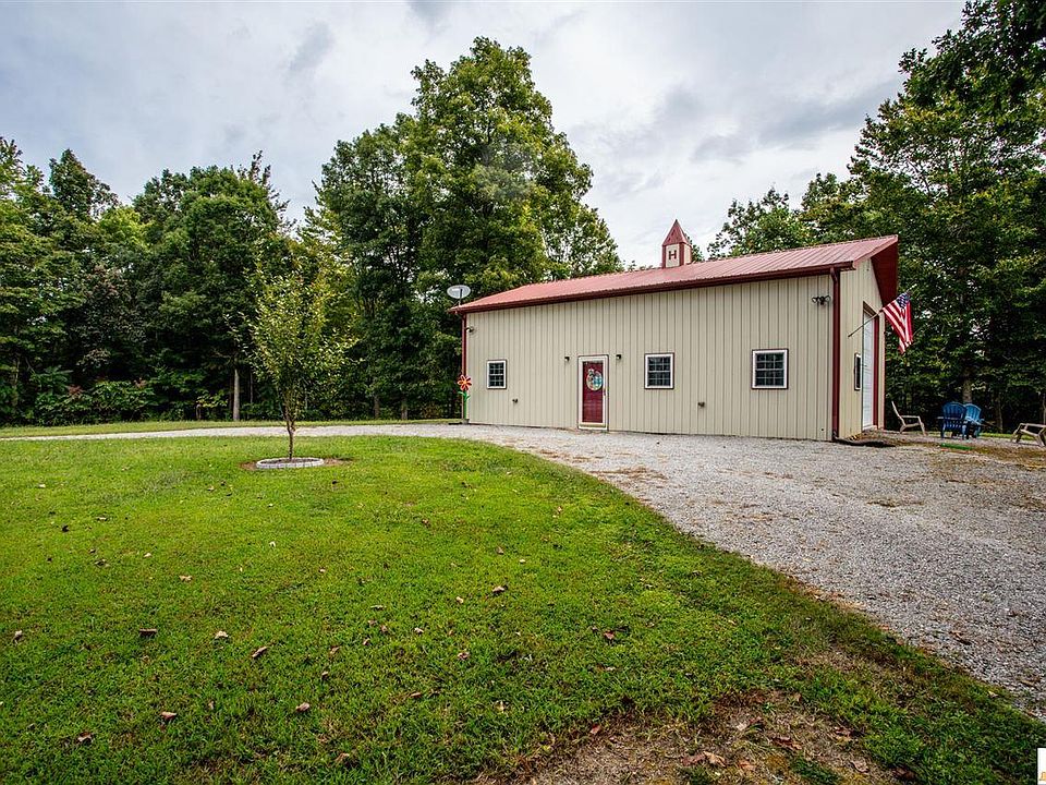 If you're looking for a peaceful vacation property reasonably close to Dale Hollow Lake or the Cumberland River or simply a getaway spot surrounded by trees, wildlife, and southern Kentucky hills, this could be a great option. While just 3 miles from Highway 61, you'll approach the property on a paved, but unlined, county road, a drive that is especially pretty in the fall. There is a gravel circle driveway at the entrance and approximately 1.5-2 acres of level, cleared land around the home. Whether you want to garden, have small animals, set up a firepit/outdoor entertaining area, or even build another structure, there is ample space. The remaining acreage is heavily wooded and fairly steep. The barndominium has 1200 sq. ft. of living space (per PVA) and has been beautifully set up by the sellers. There is one bedroom, one bathroom, open living/dining/kitchen/entertaining space, storage room, and additional storage at the top of the stairs. Kitchen appliances and washer/dryer will remain; other contents can be purchased separately if buyer is interested. Both garage doors are operational although the sellers have used the space as living quarters rather than boat or camper storage. There is also a full RV hookup (30 amp electrical and dump station). Property is located near the Cumberland/Adair County line so one could be on the Cumberland Parkway or in Columbia in approximately 20 minutes or in Burkesville in around 10 minutes. Call/text listing agent today!